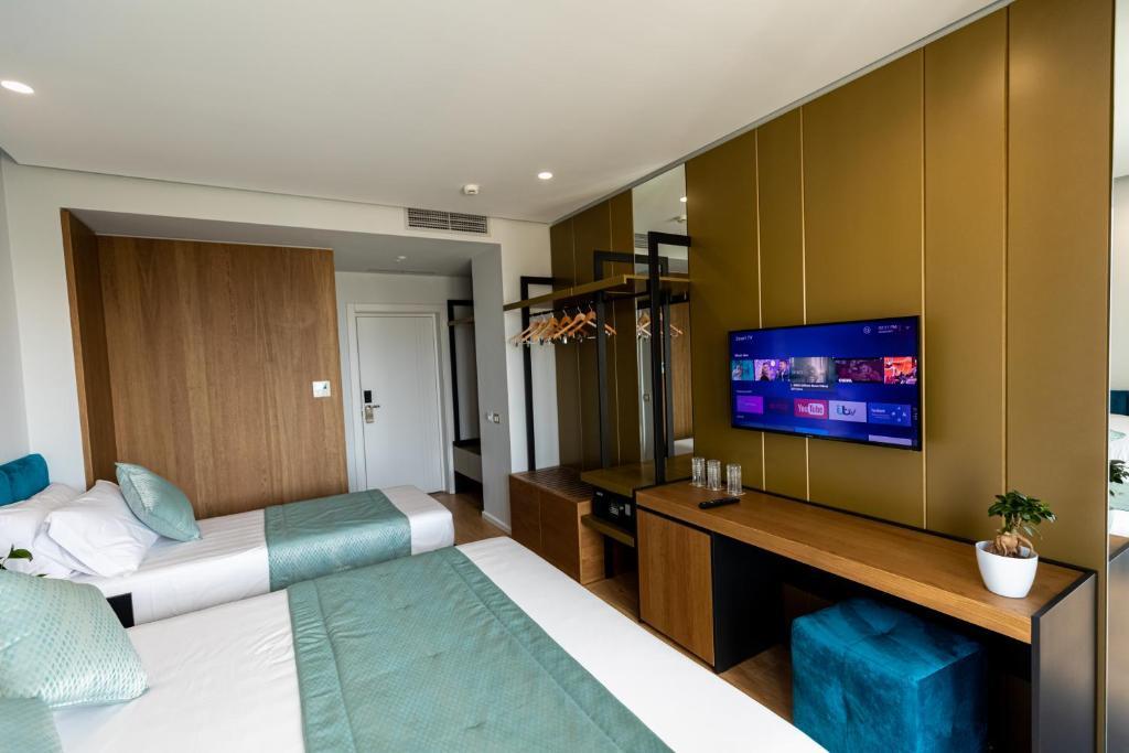 Situated in Vlorë, 150 m from Vlore Beach, Ames Hotel & SPA features accommodation with a restaurant, free private parking, a bar and a shared lounge. Each accommodation at the 4-star hotel has city views, and guests can enjoy access to a garden and to a private beach area. The accommodation provides a 24-hour front desk, room service and currency exchange for guests.